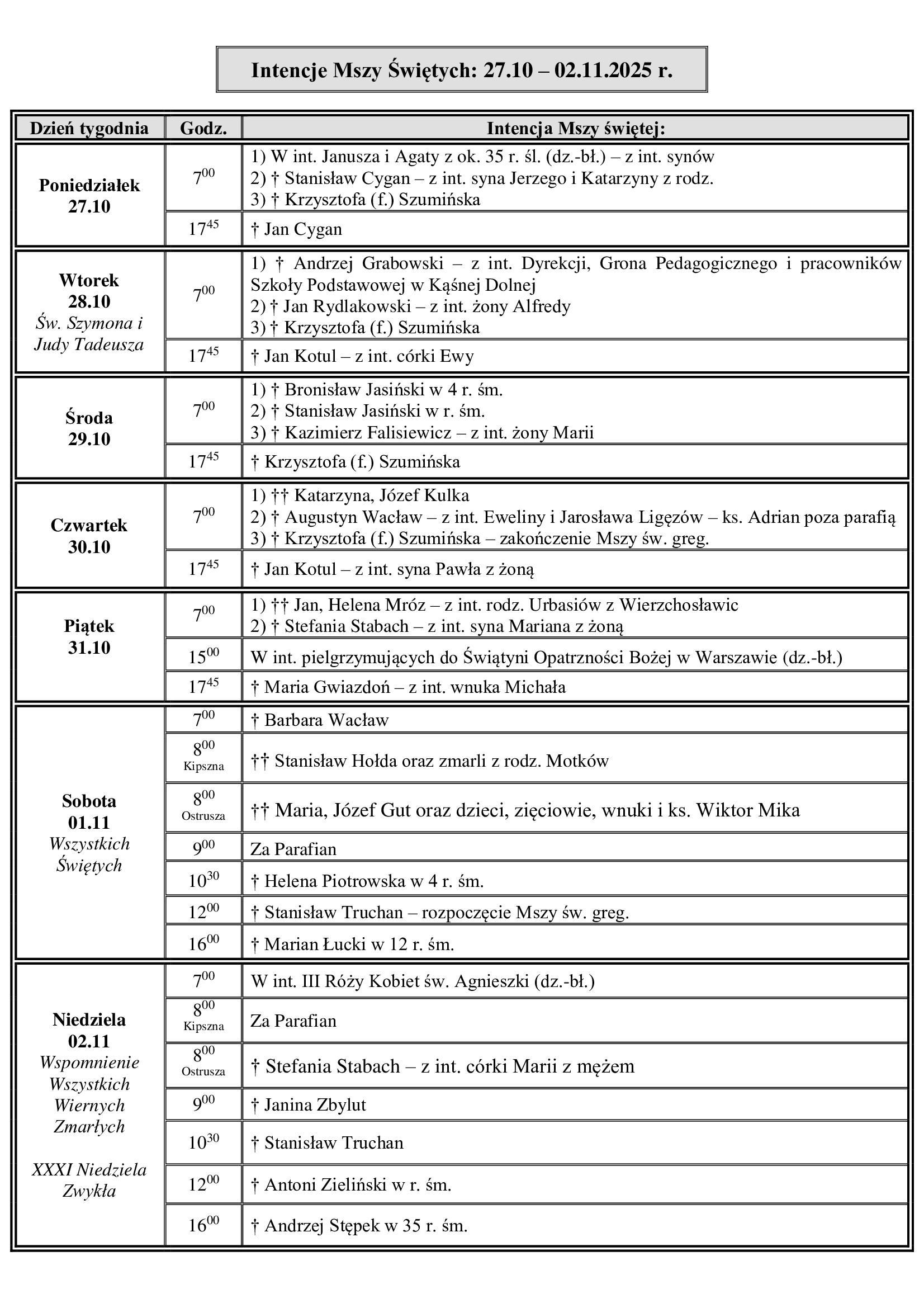 18 paź INTENCJE MSZALNE - 20.10. - 21.10. 2025 R. Przeczytaj całość